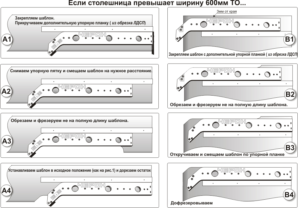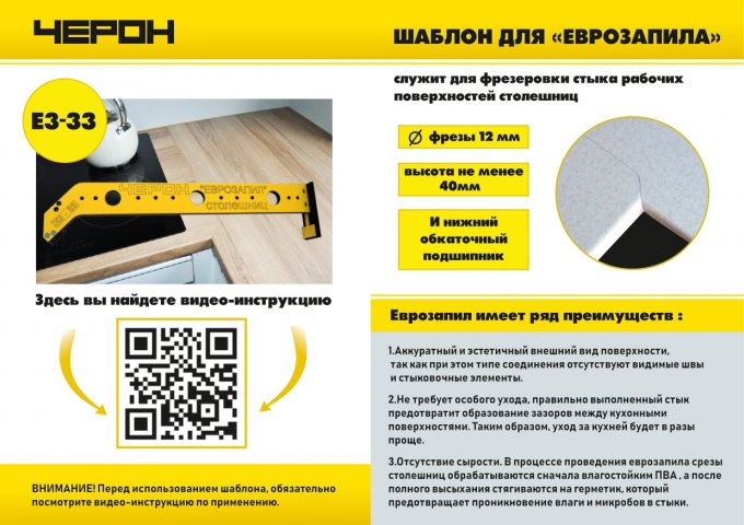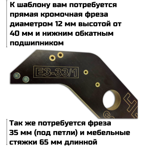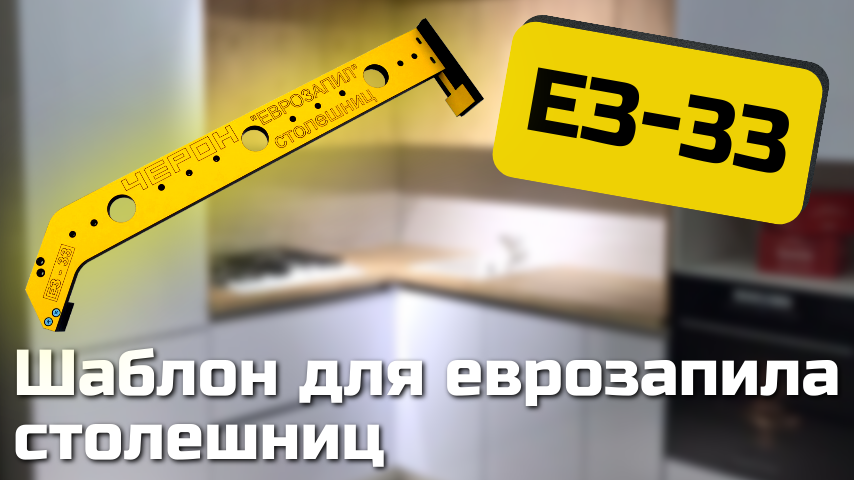 Шаблон ЕЗ-33/1 служит для фрезеровки стыка рабочих поверхностей столешниц, под так называемый "Еврозапил" (беcшовное соединение столешниц)